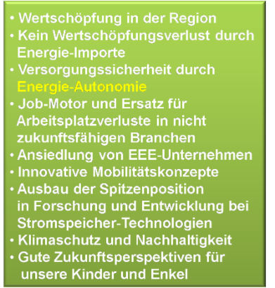 Heimische Energie aus regenerativen Quellen, für alle zugänglich und erschwinglich. Die beste Vorsorge gegen Krisen und Preissteigerungen. Mittelständische Betriebe werden gefördert, Arbeitsplätze und Geld bleiben in der Region.